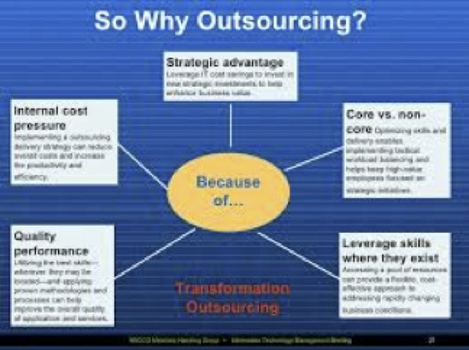 L’Insourcing , possiamo dire agevolmente che permette all’azienda la completa padronanza delle scelte tecnologiche, un livello superiore di flessibilità e una maggiore attenzione ai costi.